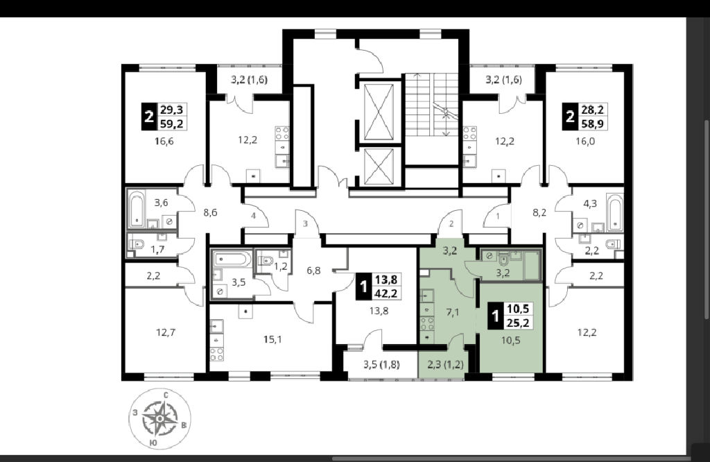 Общая: 25,2 м2